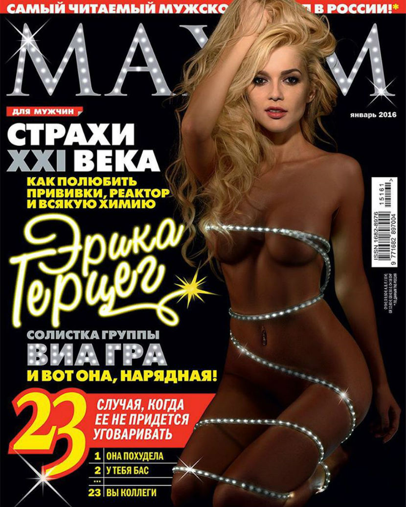 Эрика Герцег позировала голой для журналов «Максим» и «Плейбой» в 2016 и 2019 годах. Также она участвовала в откровенных видеоклипах группы «Виагра», где демонстрирует свое обнаженное тело.