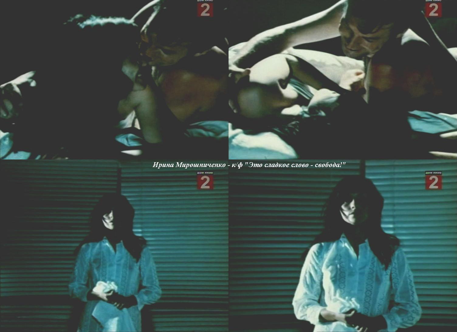 Ирина Мирошниченко снималась в ряде фильмов, включая «Это сладкое слово – свобода!», где присутствует постельная сцена. Также легкая эротика представлена в пьесе «Татуированная роза» и фильме «Мера пресечения». На театральной сцене актриса часто демонстрировала свои ноги.