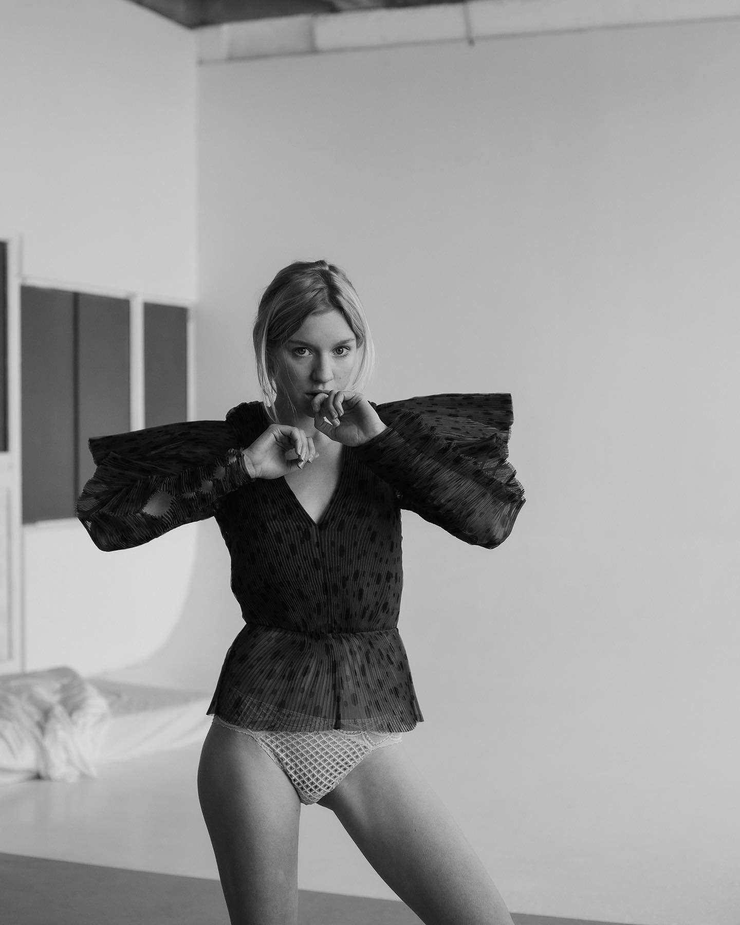 В своих социальных сетях актриса публикует фотографии, включая образы в нижнем белье и купальниках. Сериал «Happy End» и другие проекты содержат сцены с её участием без одежды.