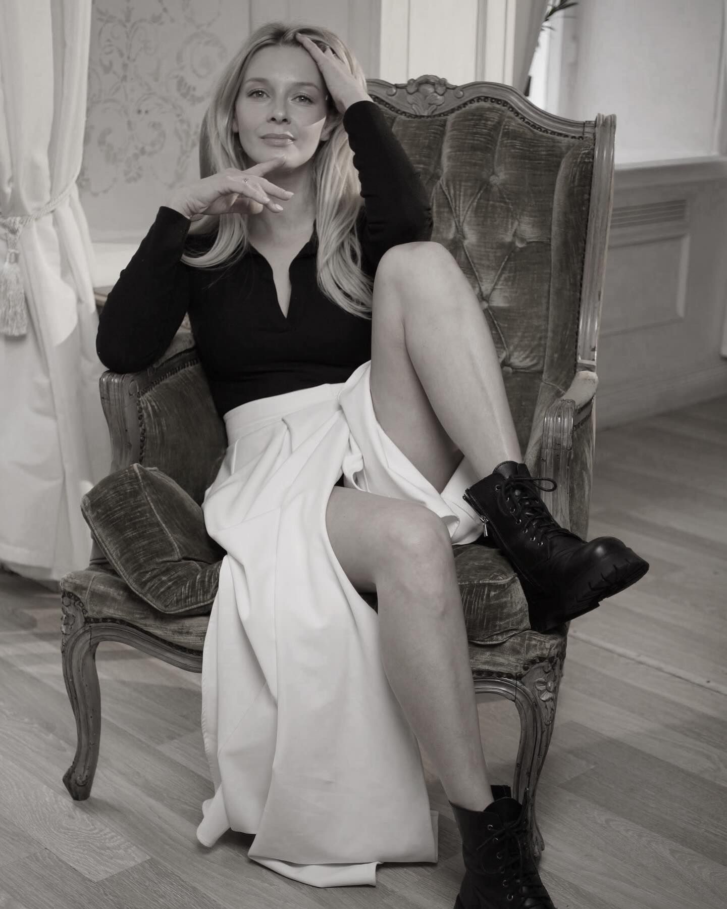 Любава Грешнова - украинская и российская актриса театра и кино, известная своей работой в телевизионных сериалах, таких как «Екатерина», «Сиделка», «Случайная невеста» и других. Она также снялась в сериале «Счастливый конец», где появилась в откровенной сцене.