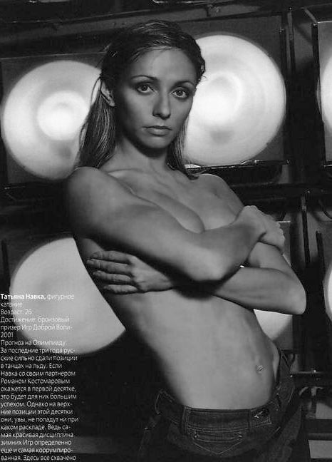 Татьяна Навка позировала для журнала Maxim, фотографии были сняты в сдержанном формате. Больше обнаженных изображений фигуристки можно найти в журнале «7 Дней», где она представлена у бассейна в открытом купальнике.