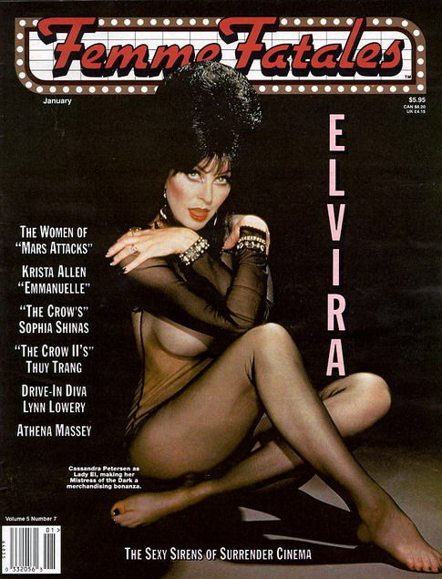 Кассандра Петерсон, известная благодаря роли в фильме «Эльвира: Повелительница тьмы», приобрела популярность с образом вампирши и элементами эротики. В молодости она также принимала участие в фотосессиях в стиле «ню» для глянцевых изданий.