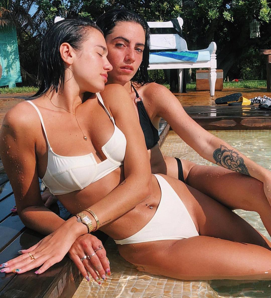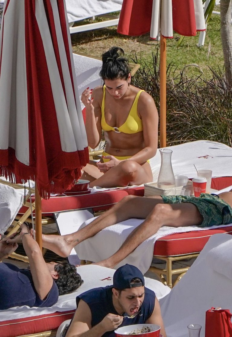 Дуа Липа появилась на фото в купальнике, где ее фигура привлекла внимание. Также в сети появились селфи певицы в красном бикини и другие снимки с пикантными нарядами.
