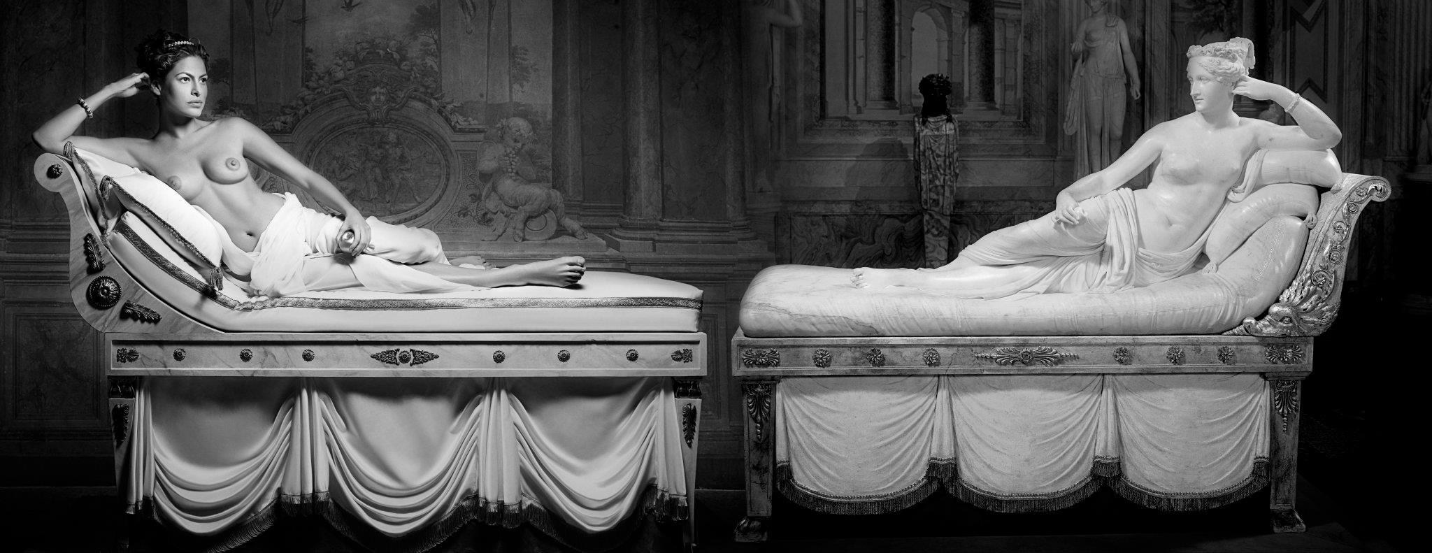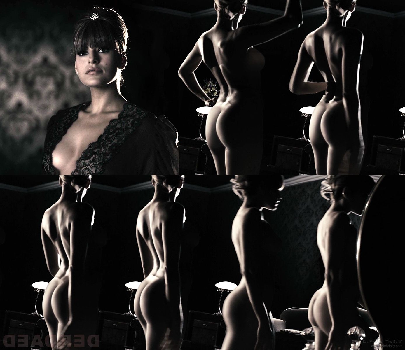 Журнал Vogue опубликовал фотографии Евы Мендес в нижнем белье, которые были сделаны для издания «Максим». На снимках артистка представлена в эротическом стиле, хотя они не являются откровенными. Также актриса появлялась обнаженной в фильме «Мститель», где демонстрировала свою фигуру.