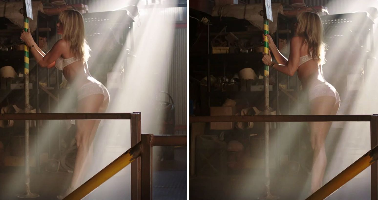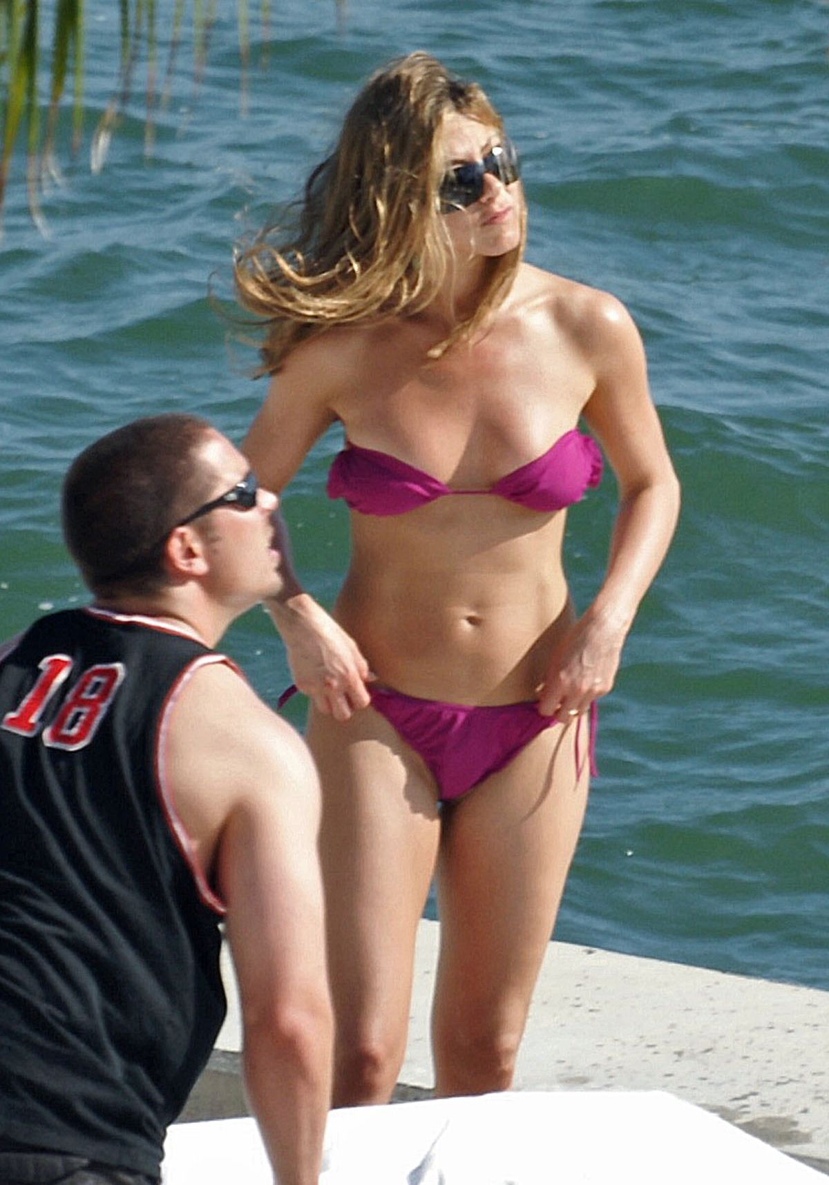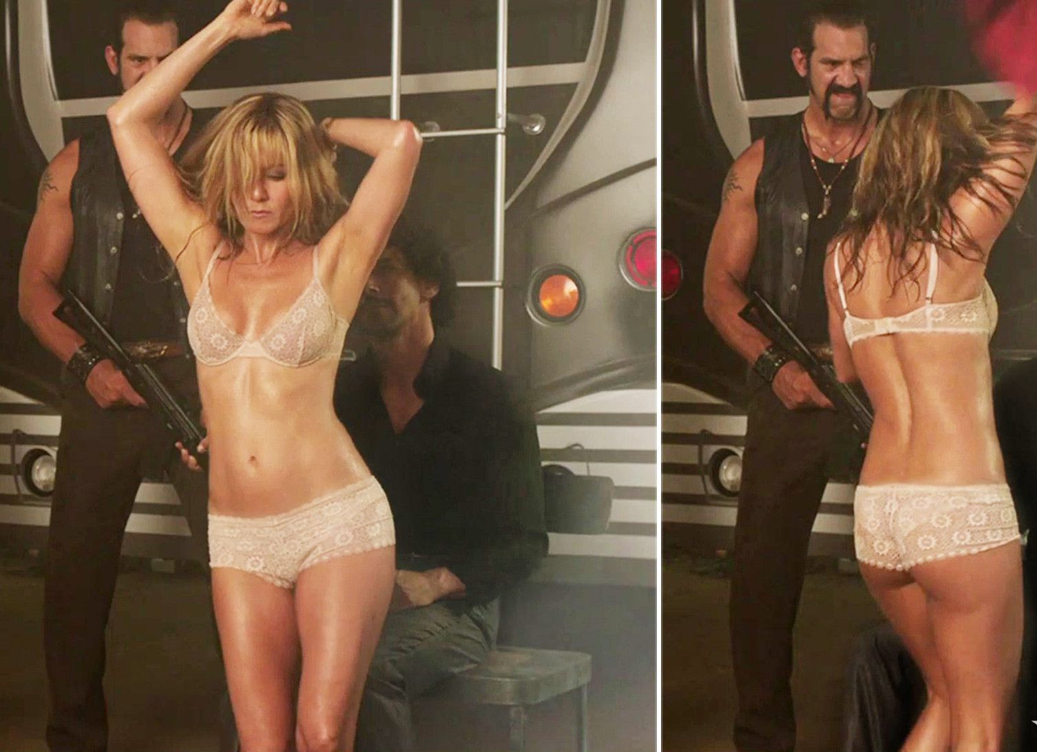 Дженнифер Энистон снялась голой в фильмах «Марли и я» и «Развод по-американски», а также частично обнаженной в картинах «А вот и Полли» и «Мы Миллеры». Артистка представлена на эротических фотографиях в стиле «ню», где она демонстрирует тело, но у нее нет интимных снимков для журнала Playboy или украденных фото.