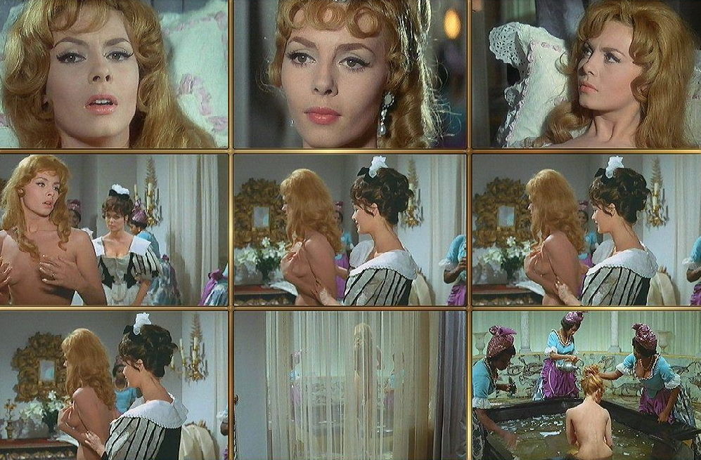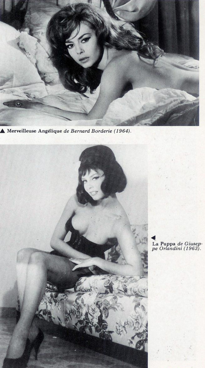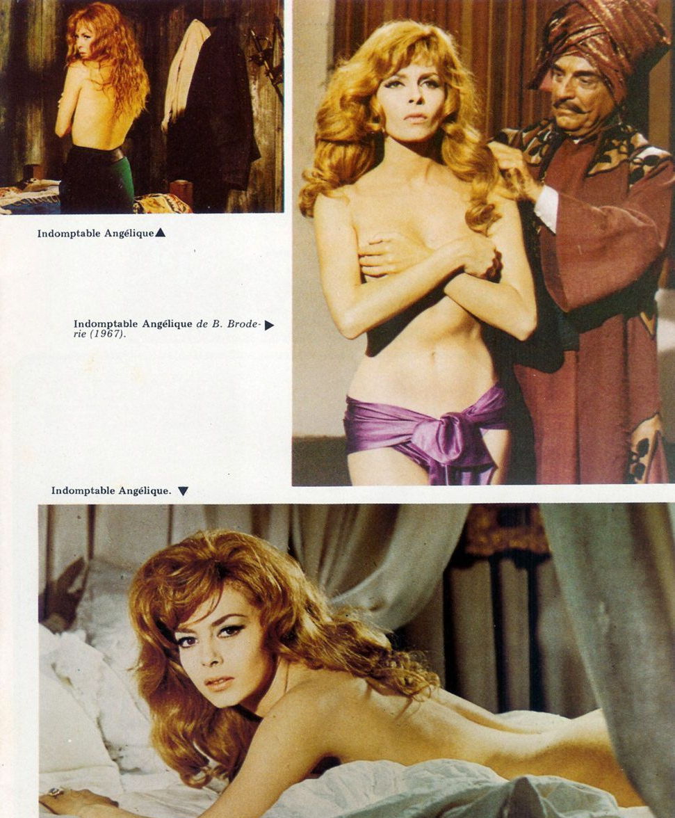В фильме «Анджелика» актриса Мишель Мерсье частично обнажена, прикрывая бюст руками. Откровенные сцены в картине привлекают внимание зрителей.
